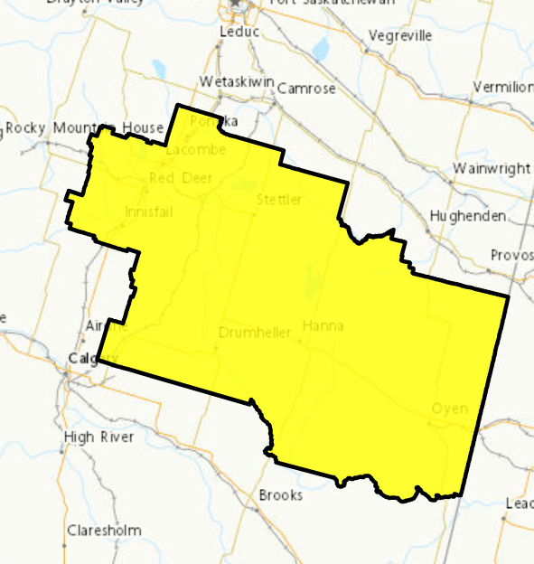 | Environment Canada Wind Warning in effect for parts of central and eastern Alberta. | Strong northwest winds gusting to 90 km/h are expected late tonight. Winds will weaken Tuesday morning. Locally poor visibility due to snow and blowing snow is also possible. For details: Environment Canada. |