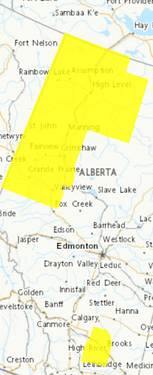 | ECCC Fog advisory in effect for forecast areas in Alberta. | Environment Canada Fog Advisory in effect for forecast areas in Alberta. Patchy fog has developed leading to near zero visibility at times. Fog is expected to dissipate later this morning. Travel will be hazardous in some locations. If driving, turn on your lights, slow down and maintain a safe following distance. For details: Environment Canada. |